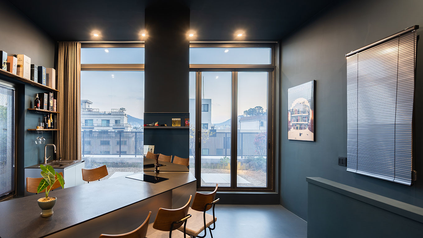 스위치를 켜면 테라스의 빛과 풍경을 그대로 받아들이고, 스위치를 끄면 시선을 차단해 공간의 밀도를 높입니다.