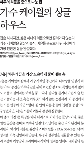 가수 케이윌의 싱글하우스처럼,VEXA Space로 하루의 리듬에 맞춰 공간의 무드를 바꿔보세요.